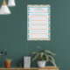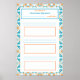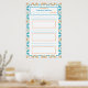 Garota Azul com TDAH Rastreador de Hábito de Meta Gráfico de Contagem Cartaz para Geladeira. Coloque isto na sua geladeira, arquivo, quadro de avisos, parede ou prateleira. Edite o título no topo para o que você preferir, usando o botão Personalizar. Com espaço no topo para escrever o tema da sua resolução de Ano Novo e a data. No meio há espaço para escrever três tarefas, em duas linhas azuis claras cada. Com três caixas laranjas abaixo de cada conjunto de linhas, para contar cada vez que você completar o hábito. A borda é um padrão geométrico divertido e bonito em azul e laranja. Útil para adultos e crianças que têm TDAH e precisam de lembretes visuais ou truques para lembrar o que precisam fazer ou metas que desejam alcançar. Possui espaços em branco para que você possa usar um marcador de apagar a seco para preenchê-lo. Ótimo para pessoas que gostam de se organizar ou planejar ou para ensinar em casa ou fazer lição de casa, ou acompanhar a revisão de exames. Faz um presente de formatura bonito para sua filha ou irmã, que está prest