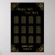 Usando uma fonte elegante e retrô, criei um gráfico que diz "Por favor, encontre seu assento". Os embelezamentos de enquadramento com uma vibração de Art Deco foram adicionados a cada canto. Todos esses gráficos foram embelezados com falsos tratamentos dourados. Fontes e cores complementares foram usadas para os campos de espaço reservado que você editará à medida que personaliza este design. Todas as camadas foram adicionadas separadamente e deixadas destravadas para lhe dar um controle considerável de design. Sinta-se livre para mudar a cor de fundo para qualquer coisa que você preferir. Esta configuração tem 12 mesas definidas em 3 linhas de 4. // 122 // (Foram incluídas versões alternativas dos gráficos de texto do cabeçalho, mas "desativadas". Você pode vê-las clicando no globo ocular ao lado de cada camada, caso esteja interessado em qualquer alteração.)