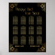Usando uma fonte elegante e retrô, criei um gráfico que diz "Por favor, encontre seu assento". Os embelezamentos de enquadramento com uma vibração de Art Deco foram adicionados a cada canto. Todos esses gráficos foram embelezados com falsos tratamentos dourados. Fontes e cores complementares foram usadas para os campos de espaço reservado que você editará à medida que personaliza este design. Todas as camadas foram adicionadas separadamente e deixadas destravadas para lhe dar um controle considerável de design. Sinta-se livre para mudar a cor de fundo para qualquer coisa que você preferir. Esta configuração tem 12 mesas definidas em 3 linhas de 4. // 122 //