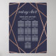 Este moderno e elegante quadro de assentos de casamento apresenta uma forma geométrica rosa dourada tensa e falsa e caligrafia branca rico num fundo azul-da-noite. Elimine facilmente as mesas que não precisar para os seus convidados de casamento.