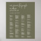 Este moderno poster de assentos de verde-oliva picante é perfeito para um casamento simples. Este sinal pode ser usado para organizar seus convidados em ordem alfabética ou por número de tabela, alterando os nomes dos títulos. A design boho de madeira apresenta tipografia rústica única e na moda boêmica numa cor verde mínima de floresta florestal. Esta placa de casamento tem espaço suficiente para cerca de 120 convidados. Deixe espaço para mais (ou menos) convidados clicando no botão "personalizar" e diminuindo ou aumentando o tamanho da fonte. Além do posicionamento de cada convidado, personalize esse cartaz com os nomes do casal e a data do casamento.