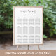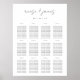 O gráfico moderno e mínimo de assentos de convidados de casamento oferece espaço para até 12 mesas de 10, ou 120 convidados. Seus nomes e data de casamento ou evento aparecem no topo em letras negras suaves.