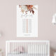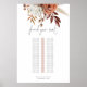 Rust Terracotta Florals Modern Script Mesa Solteiro Gráfico Localizar seu assento está em um script na moda set e o resto do texto que você pode personalizar facilmente. Um buquê de terracota e de florais coloridos creme no outono está no topo.