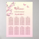 Cherry Blossoms em um fundo cor-de-rosa com um texto bem-vindo e seus nomes de noiva e noiva em um belo roteiro escrito à mão. Lista de assentos com nomes personalizados para 80 convidados. Produtos de casamento correspondentes disponíveis.