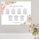 Este lindo gráfico floral cor-de-rosa de 7 mesas tem espaço para 70 convidados com 10 lugares por mesa com um título de caligrafia e os nomes do casal no fundo. O design boho cólico apresenta rosas de aquarelas pintadas à mão e flores em tons de rosa-pincel, pêssego-coral, rosa poeirento, e mauve, cercados por grampos de folhas de eucalipto e verde-jardim. Uma maneira maravilhosa de adicionar elegância e estilo à sua recepção de casamento enquanto fazer, é fácil para os seus convidados encontrar os lugares que lhes foram atribuídos.