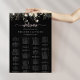 Este gráfico de assentos alfabéticos preto de flor selvagem é perfeito para um casamento rústico. O design apresenta flores silvestres cor-de-água rosa, pinceladas, amarelas e brancas dispostas em buquês elegantes. Este sinal pode ser usado para organizar seus convidados em ordem alfabética ou por número de tabela. Ele tem espaço suficiente para cerca de 150 convidados de casamento. Deixe espaço para mais (ou menos) clicando no botão personalizar e aumente ou diminua o tamanho da fonte. Personalize este sinal com os nomes da noiva e do noivo e a data.