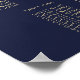 Os cantos de sequeiro dourado, elegantes, quicos e glamourosos falidos impressos e o guião dourado num fundo azul marinho, num gráfico de lugares de assentos de casamento. Este design clássico e sofisticado é perfeito para o casal de competição de tendências e na moda. Personalize com sua própria mensagem na frente, assim como um monograma personalizado inicial no verso. Todas as impressão de fotos.