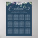 Apresentando Marinho Blue Floral Folaves Manuscrito Gráfico de Casamento de Casamento! É como um grande sinal que ajuda sua família e amigos a encontrar seus assentos na sua festa especial com uma grande tipografia de boas-vindas. O fundo azul marinho é como o céu noturno com flores bonito e folhas no topo do gráfico. Os números de tabela e os nomes de convidado são gravados em fontes clássicas. É uma maneira legal de mostrar a todos onde sentar e fazer sua festa parecer incrível!