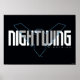 Este design gráfico capta de forma inteligente a essência de Nightwing, um dos mais habilitados defensores de Batman, através de uma estética moderna e minimalista. O logotipo apresenta o símbolo icônico da Noite em um azul metálico e elegante que contrasta fortemente com o fundo preto profundo, criando um impacto visual impressionante. A palavra "NIGHT" repete-se acima e abaixo do emblema, com uma fonte estilizada que melhora a vibração futurista do design. Este gráfico não é apenas um aceno para a agilidade e furor da Noite, mas também para a sua evolução do vibrante e acrobático Robin para um herói formidável por direito próprio. As linhas limpas e os ângulos agudos ecoam a precisão de Nightwing e a natureza de alta tecnologia de seus equipamentos e táticas, fazer este emblema perfeito para os fãs do personagem e o Universo DC maior.