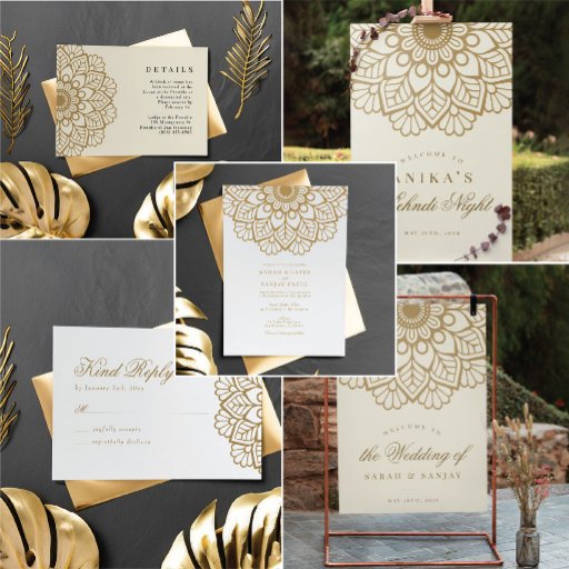 Poster Gráfico Dourado de Casamento de Mandala