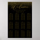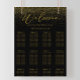 Complemente seu convite de casamento rústico com esta tabela de assentos de casamento preto. O design apresenta brilho dourado de aquarela, confete em fundo preto. Tem espaço suficiente para cerca de 120 convidados de casamento. Deixe espaço para mais (ou menos) clicando no botão personalizar e aumente ou diminua o tamanho da fonte. Personalize este sinal com os nomes da noiva e do noivo e a data.