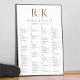 Este quadro elegante faria um excelente adicional para qualquer casamento. Os convidados são listados por ordem alfabética, o que facilita a sua busca por nomes sem travar cada mesa.