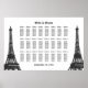 Este quadro apresenta silhuetas pretas da Torre Eiffel de Paris. Até 24 mesas com até 12 nomes por mesa, para um total de até 288 nomes de convidados. Clique em "personalizar" para mover o mesa, alterar fontes, etc.