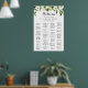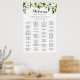 Este gráfico floral branco verde é perfeito para um casamento rústico. O design apresenta elegantes pedras brancas de aquarela com folhagem verde. Este sinal pode ser usado para organizar seus convidados em ordem alfabética ou por número de tabela. Ele tem espaço suficiente para cerca de 150 convidados de casamento. Deixe espaço para mais (ou menos) clicando no botão personalizar e aumente ou diminua o tamanho da fonte. Personalize este sinal com os nomes da noiva e do noivo e a data.