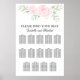 Belo gráfico floral rosa pincelado para um casamento. Duas grandes rosas cor-de-rosa escamoteadas ficam lindas contra folhas verdes seniores. Por favor, ache que seu lugar está escrito em caracteres simples e elegantes. Os nomes da noiva e noiva estão escritos abaixo em uma letra de escrita romântica. É muito fácil editar essas listas e as listas de mesas abaixo.
