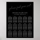 Ajude seus convidados a encontrar sua mesa com este gráfico de assentos simples e mínimo! Apresenta um texto moderno no topo que diz "por favor encontre seu assento" em um fundo preto.