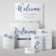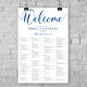 Um plano alfabético de casamento em azul real.