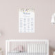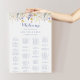 Este gráfico alfabético multicolorido de flor silvestre é perfeito para um casamento rústico. A design apresenta flores verdes, amarelas, púrpuras, azuis colorido-d'água coloridas. Este sinal pode ser usado para organizar seus convidados em ordem alfabética ou por número de tabela. Ele tem espaço suficiente para cerca de 150 convidados de casamento. Deixe espaço para mais (ou menos) clicando no botão personalizar e aumente ou diminua o tamanho da fonte. Personalize este sinal com os nomes da noiva e do noivo e a data.
