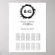 Esta design apresenta uma elegante mas simples disposição das iniciais personalizadas da noiva e do noivo. As iniciais dos casais estão cercadas com um anel de aquarela preto. Este design preto e branco é simples, mas elegante em todos os sentidos. Essa combinação simples de cores cria um estilo sofisticado, moderno e chic. Design de assentos de casamento elegantes com elementos modernos. A configuração simples da tipografia lhe dá um estilo distinto. Os convites de casamento e outros artigos de papelaria também estão disponíveis.