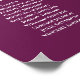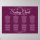 Este gráfico de assentos de 8 mesas facilitará aos seus convidados encontrar os assentos na sua recepção de casamento. Possui um simples design elegante de texto branco com fundo magenta ou roxo do chassis e borda floral de campo de vintage prateado. Tem assentos para 80 convidados.