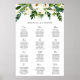 Elegante gráfico de assentos florais com rosas brancas pintadas a aquarela e verde pintadas manualmente, juntamente com os números das mesas em um lindo roteiro manuscrito. Esta tabela de casamento é perfeita para um casamento no jardim no verão.