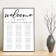 Simplesmente chic e na moda, nossa coleção de casamentos no inverno minimalista apresenta uma elegante tipografia cursiva para seu evento moderno. Bem-vindos aos seus convidados com um quadro nobre para 12 mesas com um simples script preto num poster formal branco.