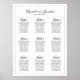 Aumente a elegância da sua recepção de casamento com nosso elegante quadro de 9 mesas. O design de preto e branco do eterno apresenta um excelente script detalhando os nomes dos casais e os números de tabela. Alojando até 90 convidados com 10 assentos por mesa, este gráfico combina facilmente sofisticação com praticidade, garantindo uma experiência perfeita e elegante para seus convidados, à medida que eles localizam facilmente seus assentos designados.