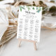 Este gráfico alfabético de eucalipto verde é perfeito para um casamento rústico. O design apresenta lindas folhas verdes de eucalipto, pintadas à mão, reunidas em buquês elegantes para embelezar seu evento. Este sinal pode ser usado para organizar seus convidados em ordem alfabética ou por número de tabela. Ele tem espaço suficiente para cerca de 150 convidados de casamento. Deixe espaço para mais (ou menos) clicando no botão personalizar e aumente ou diminua o tamanho da fonte. Personalize este sinal com os nomes da noiva e do noivo e a data.