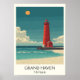 Poster Grand Haven Michigan Vintage Lighthouse Beach Art