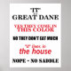 O Grande Dane Walking Gear apresenta as RESPOSTAS a todas aquelas perguntas que os donos de dane ouvem, vocês conhecem as que ouvimos! Passe os olhos e aponte para a camisa - nunca mais soe como um disco quebrado enquanto esses itens incríveis fazem seu trabalho para você. De Danes-R-Us