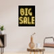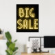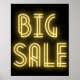 O sinal de poster comercial apresenta o texto neon "Big Sale" sobre fundo preto.