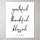 Esta tendência, poster preto e branco minimalista apresenta a citação inspiradora "grata, grata, abençoada" na tipografia moderna escrita manual.