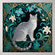 Poster Gray Cat Ornate Floral Frame