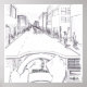 Grayscale Illustration Point of View of Driving in a City in the Day.