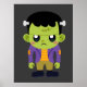 Um poster com uma imagem divertida do Dia das Bruxas com um monstro Frankenstein verde.