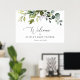 Adicione um toque pessoal à celebração do seu chá de fraldas com estes itens de na moda e festa memoráveis! Design apresenta folhas de eucalipto e verde em fundo branco.