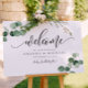 sinal de boas-vindas de folha verde, sinal de boas-vindas de ouro, sinal de boas-vindas, sinal de boas-vindas de casamento, sinal impresso, modelo, sinal de evento, placa de varanda, sinal de casamento elegante, casamento de ouro, coração de ouro, sinal de boas-vindas de caligrafia, sinal de boas-vindas de caligrafia, Eucalyptus Leaf
