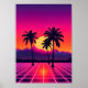 Um pôr do sol retroativo de ondas de vapor, nos anos 80, com redes neonatais, palmeiras e um horizonte brilhante. Perfeito para amantes nostálgicos de ondas sintéticas.