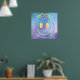 Obtenha um poster Groovy com um retroclássico rosto ocular púrpura e pastel azul- Lembrança dos hippies pop de arte dos anos 60 e 70