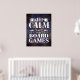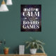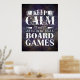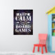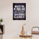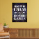 Jogue com este poster legal para decoração da sala de jogos! Este poster de jogos personalizado apresenta a citação "manter a calma e jogar jogos de conselho" em tipografia mista com fundo de grunge roxo. Muitos tamanhos de poster estão disponíveis, com opções adicionais.