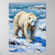 Esta pintura expressiva retrata um urso polar como um poderoso guardião de seu habitat gelado. As pinceladas grossas e visíveis criam uma sensação de movimento e textura, capturando a beleza robusta da neve e a presença formidável do urso. A composição, com o urso polar caminhando em direção ao espectador, transmite uma sensação de força e solidão em um vasto e frio ambiente.