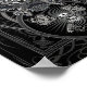 Uma poderosa coruja alada voa sobre um crânio adornado com chaves. A coruja é enquadrada por intrincados, padrões giratórios, correntes e uma cruz Celta. O esquema monocromático de cores acrescenta à atmosfera dramática da imagem.