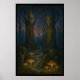 Nesta pintura de óleo surreal, árvores torrejadoras em forma de deuses antigos observam sobre uma floresta mística de crepúsculo. A úmida flutua entre os cogumelos brilhantes enquanto criaturas curiosas, de outro mundo espiam por trás de pedras cobertas de musgo. Inspirada pelo surrealismo sonhador de Leonora Carrington, a cena evoca uma atmosfera assombrosa e serena onde mito e natureza se desfazem num reino encantado.