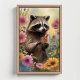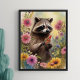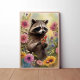Abraçar a beleza da natureza com este charmoso guaxinim rodeado por flores silvestres vibrantes, uma escolha perfeita para a decoração rústica ou caprichosa.