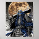 Um poderoso e gentil impressão de arte de fantasia japonesa de um guerreiro samurai demoníaco. Apelido na armadura tradicional com uma máscara ameaçadora e olhos azuis brilhantes, o guerreiro fica debaixo de uma lua de cheio, carregando uma espada maciça. Esta ilustração detalhada ao estilo do manga, com seus tons pretos e brancos impressionantes e acentuados sotaques elétricos azuis agudos, é uma peça perfeita para fãs do lore samurai, fantasia escura e arte dinâmica inspirada na Ásia.