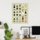 Adicione um toque divertido à sua cozinha ou a qualquer sala com esta poster que apresente ilustrações de garrafas de vinhos num estilo simples de rabisco com as diferentes variedades de vinhos brancos, tintos e espumantes identificados abaixo de cada garrafa, como chardonnay, pinto noir, malbec, champanhe e muito mais. É a decoração perfeita para amantes e consumidores de vinho.
