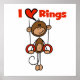 Um ginasta de macacos bonitos nos anéis e texto que diz "I (coração) Rings" em camisetas de design de ginástica, capuzes, canecas, cartões, adesivos, sacos de tote e outros presentes de ginástica.