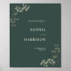 Boas-vindas com designs botânicas ciganas de respiração de bebê em cantos com fundo verde de pavão e texto sem branco.