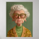 Retrato de uma vovó surpreendida e engraçada com óculos e cabelos encaracolados de cinza