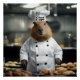 "Habilidade com Massas: O Capivara Culinário", uma encantadora capivara usa um casaco de chef branco e crocante e um chapéu a jogo, enquanto assume o centro das atenções numa cozinha de pastelaria. com sua bancada de trabalho adornada com pastelarias coloridas, Uma imagem de criatividade e charme culinário se desenrola, mostrando os talentos inesperados de uma capivara no mundo da panificação fina!